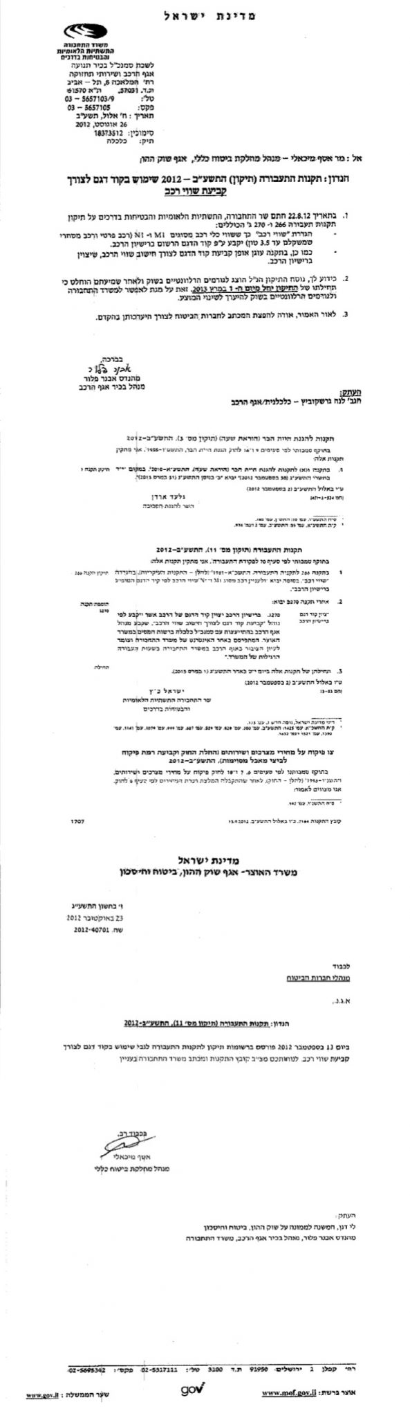 - 2024 - תיקון הוראות החוזר שער 6 חלק 2 ענף רכב